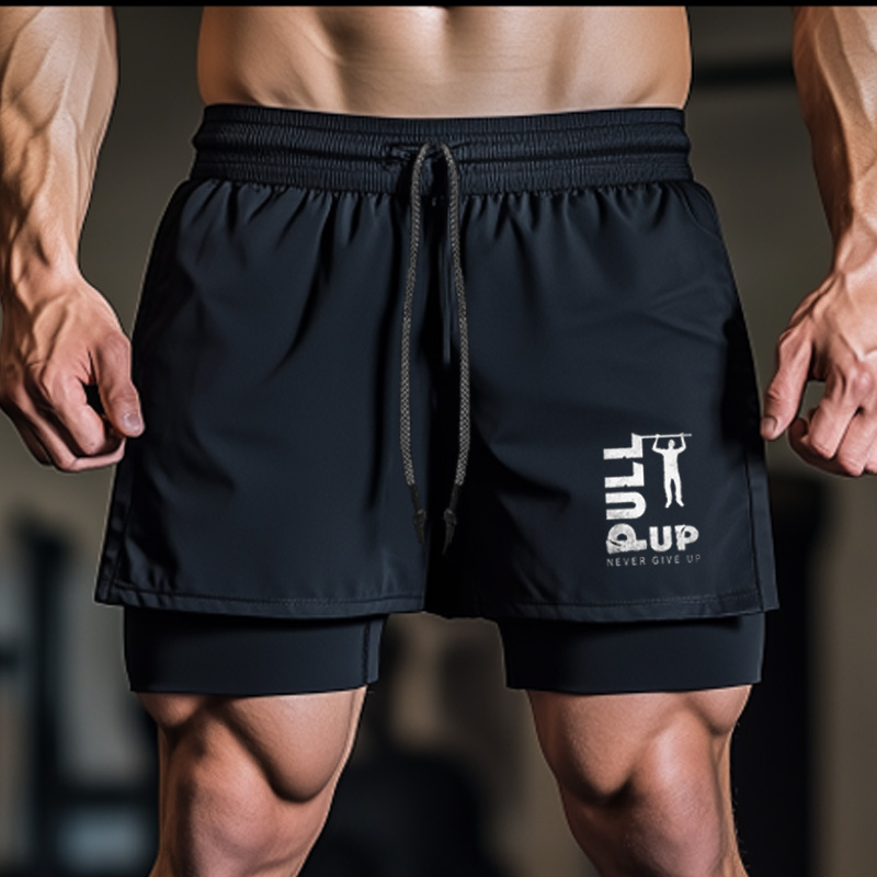 Cheer Up, Exercise Slogan, Fitness Double-layer Shorts