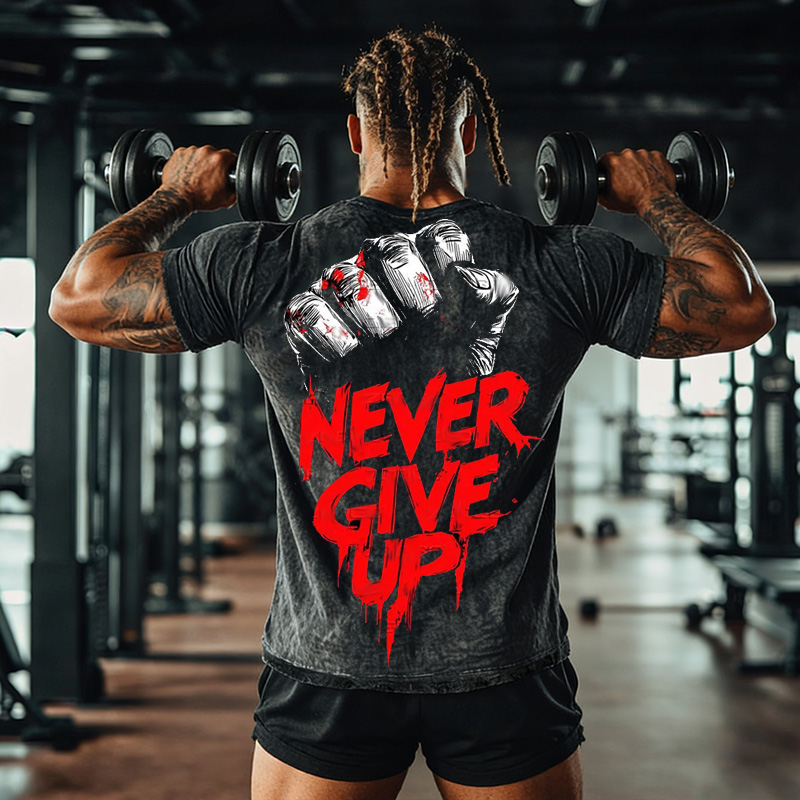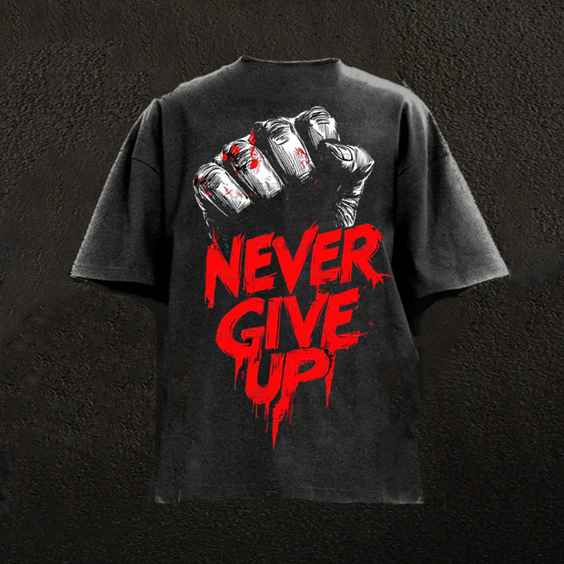 Never Give Up Wash The Short-sleeved Round-neck Shirt