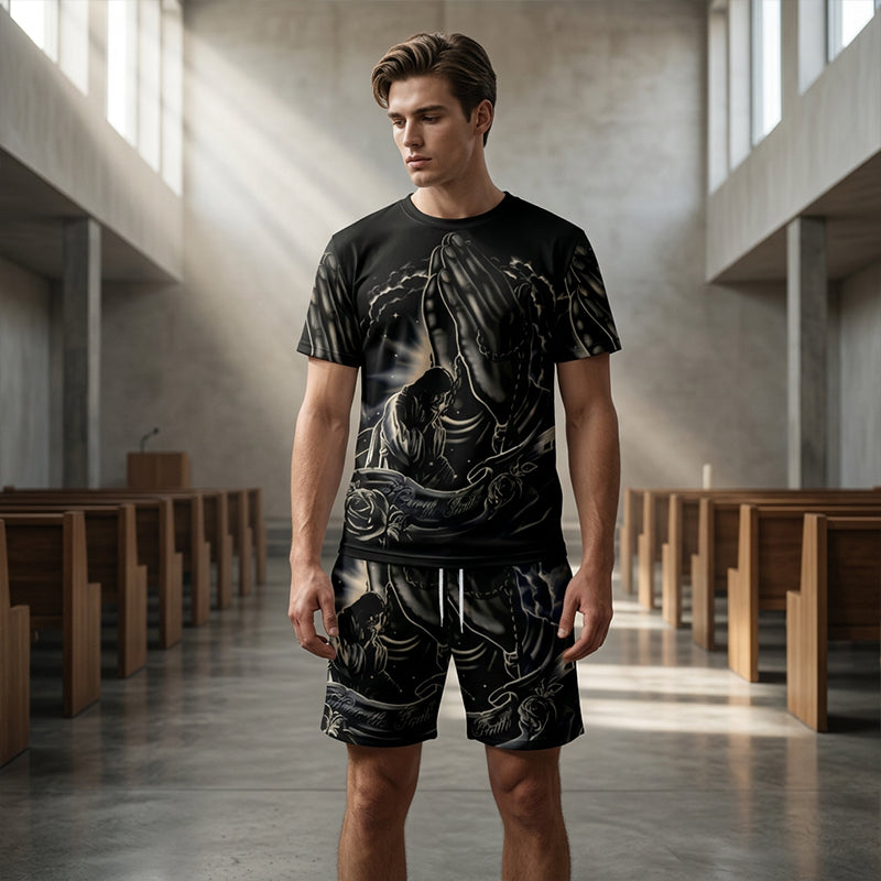 Men’s Streetwear Inspired Graphic Two-Piece Short Set