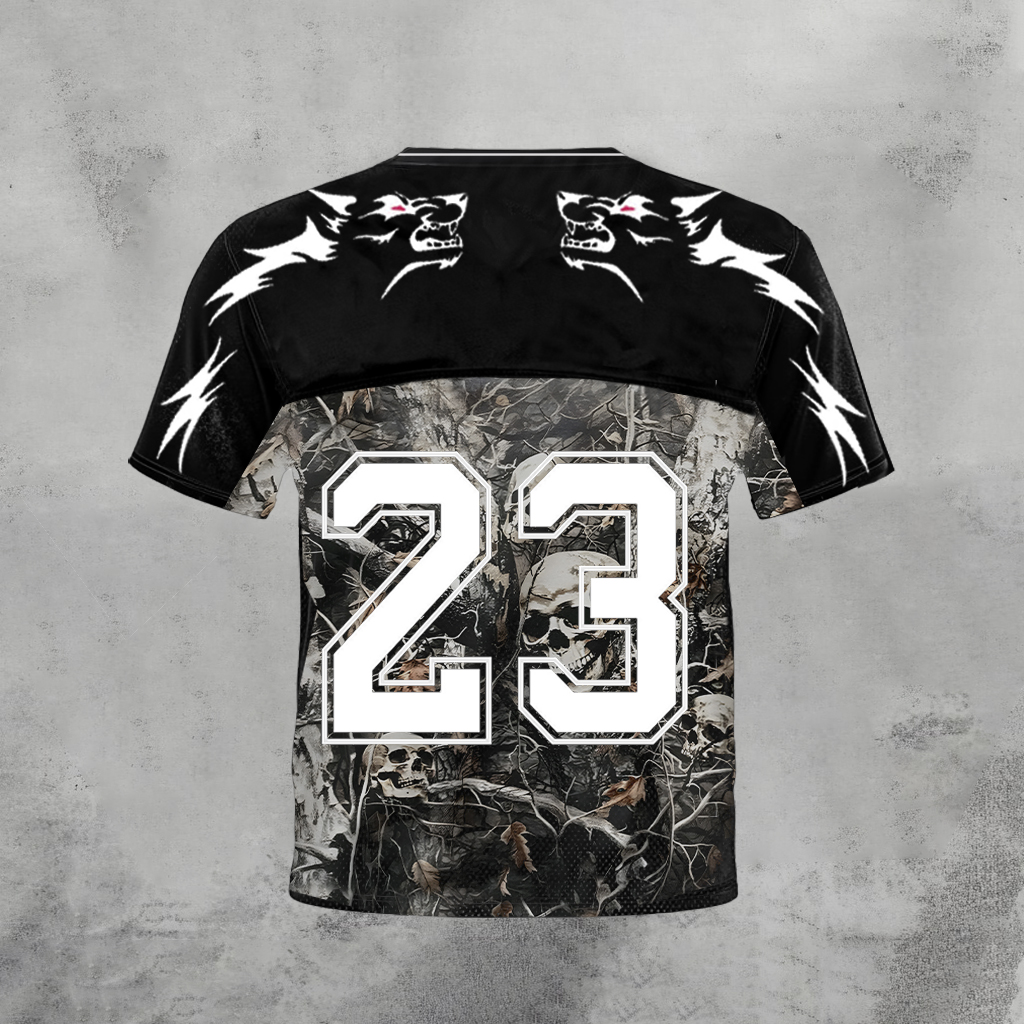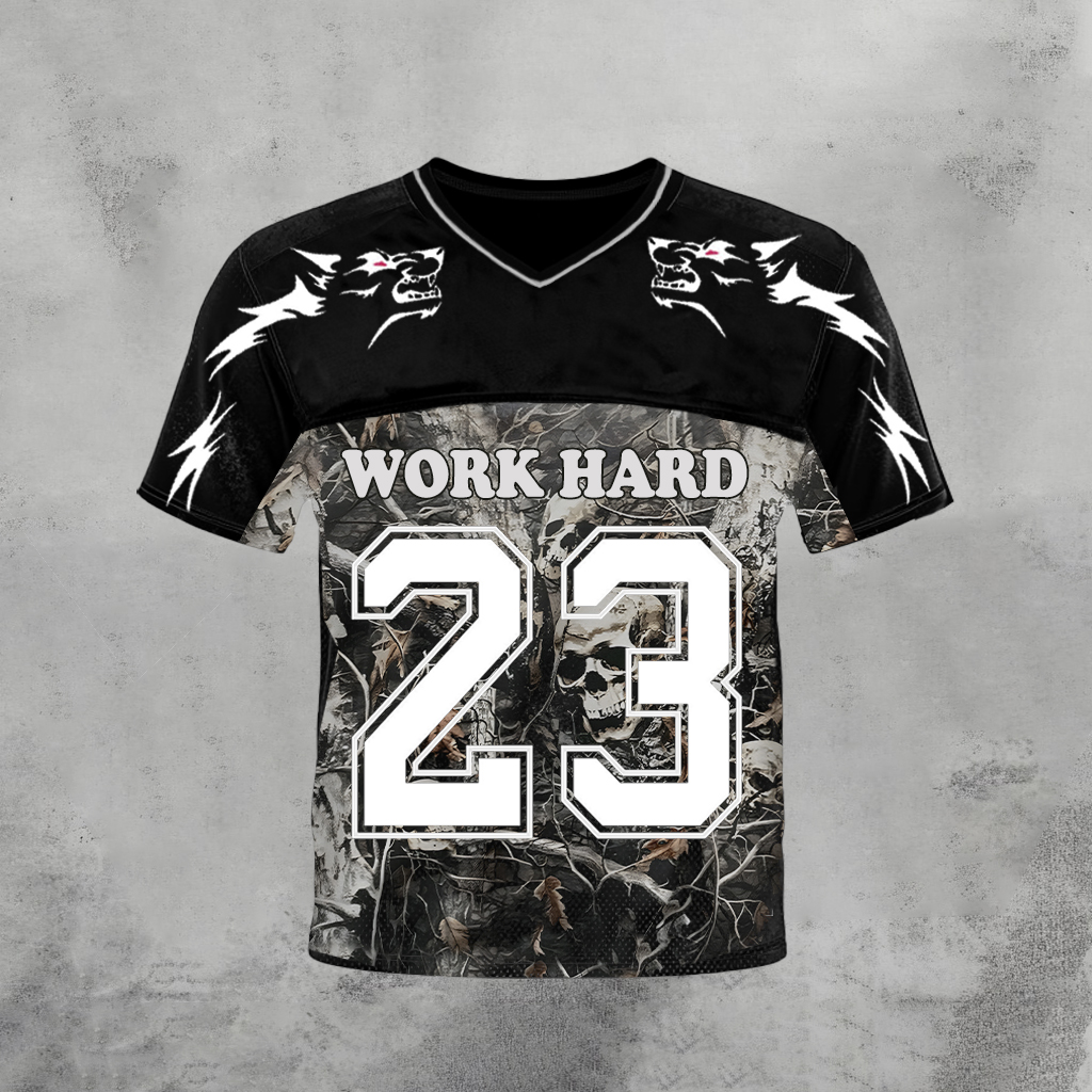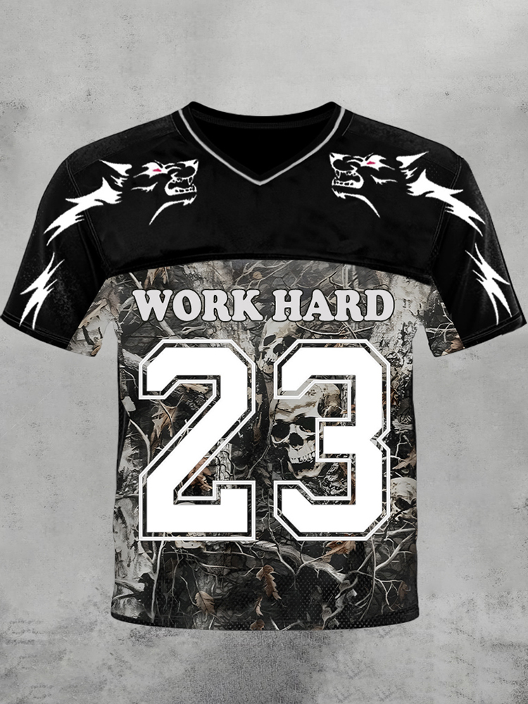 No.23 Work Hard Wolf Totem Skull Camouflage Graphics Gym Blokecore Blokette Jerseyfit V-neck T-shirt