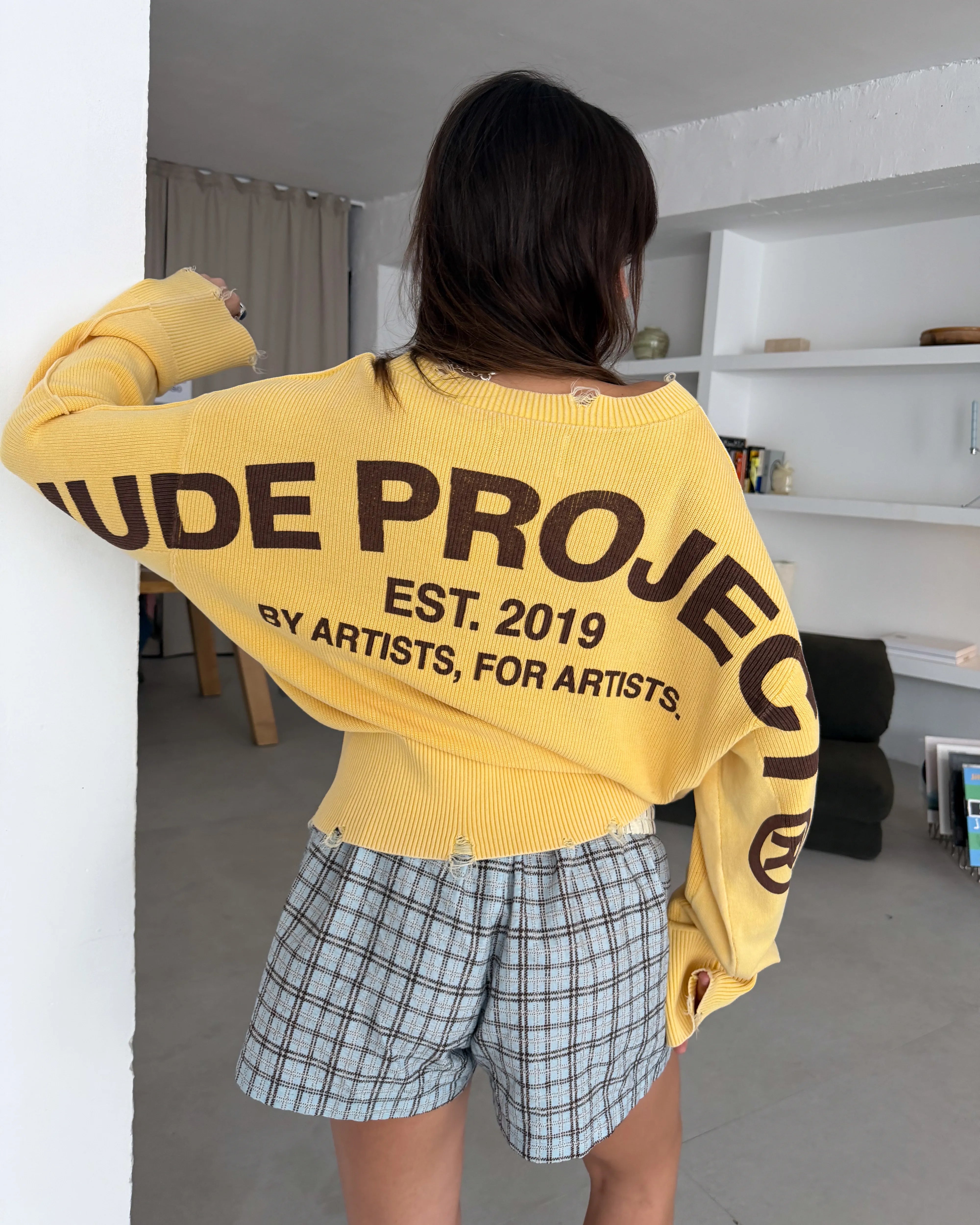 Perfect Cropped Knit Sweater Yellow