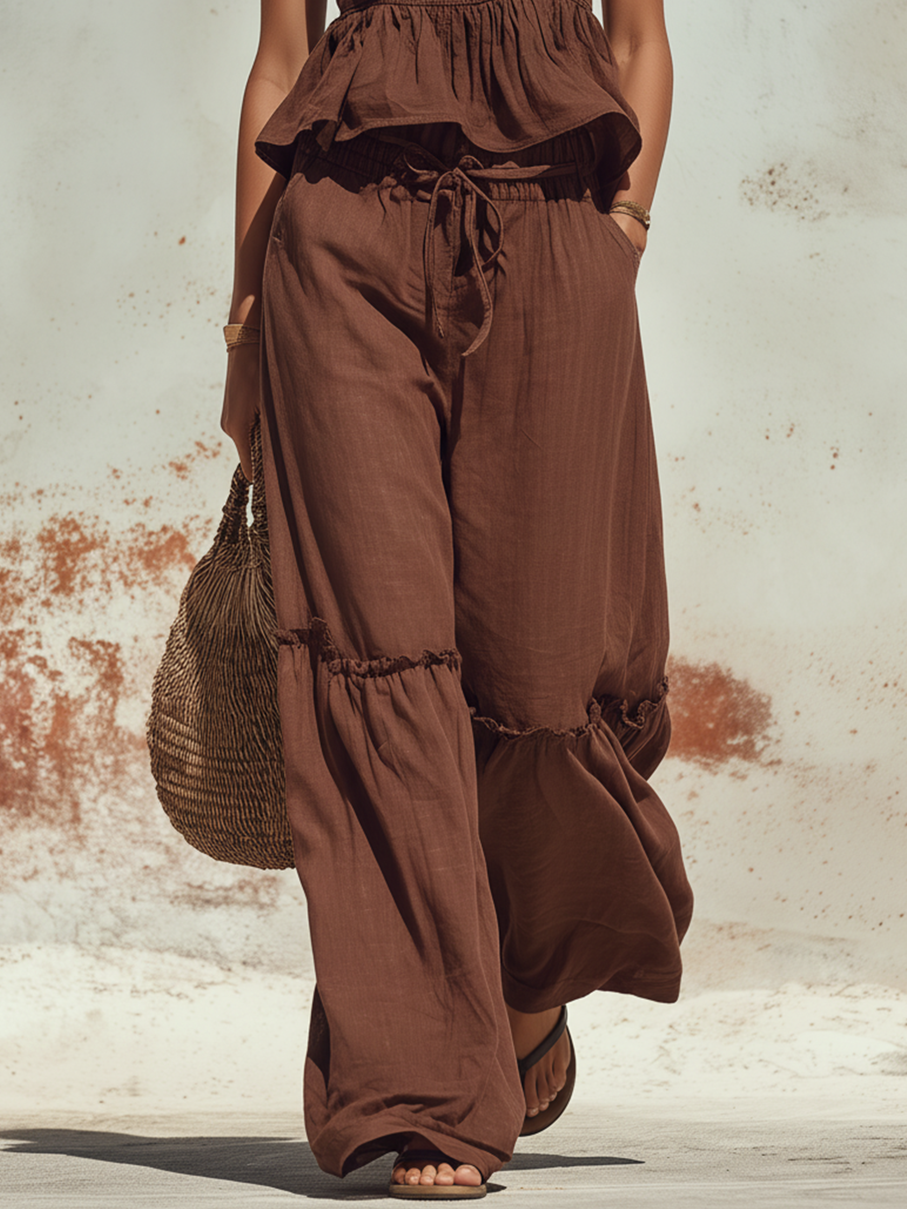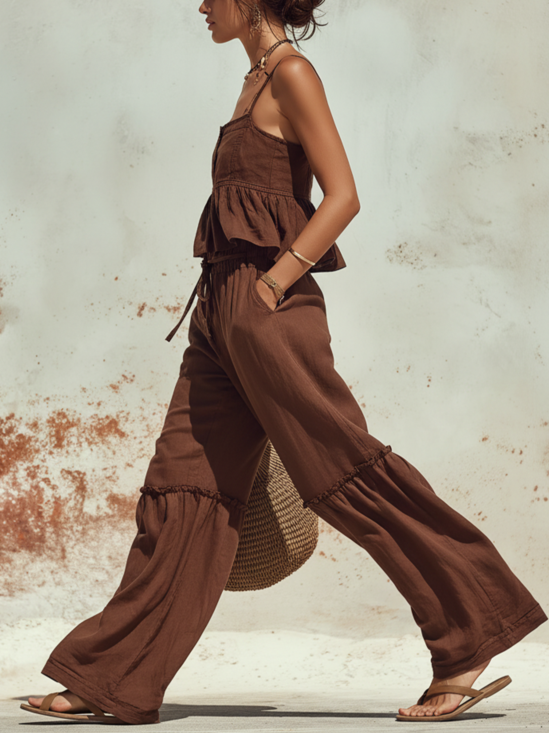 Ruffle Camisole Tiered Wide-Leg Denim Two-Piece Set