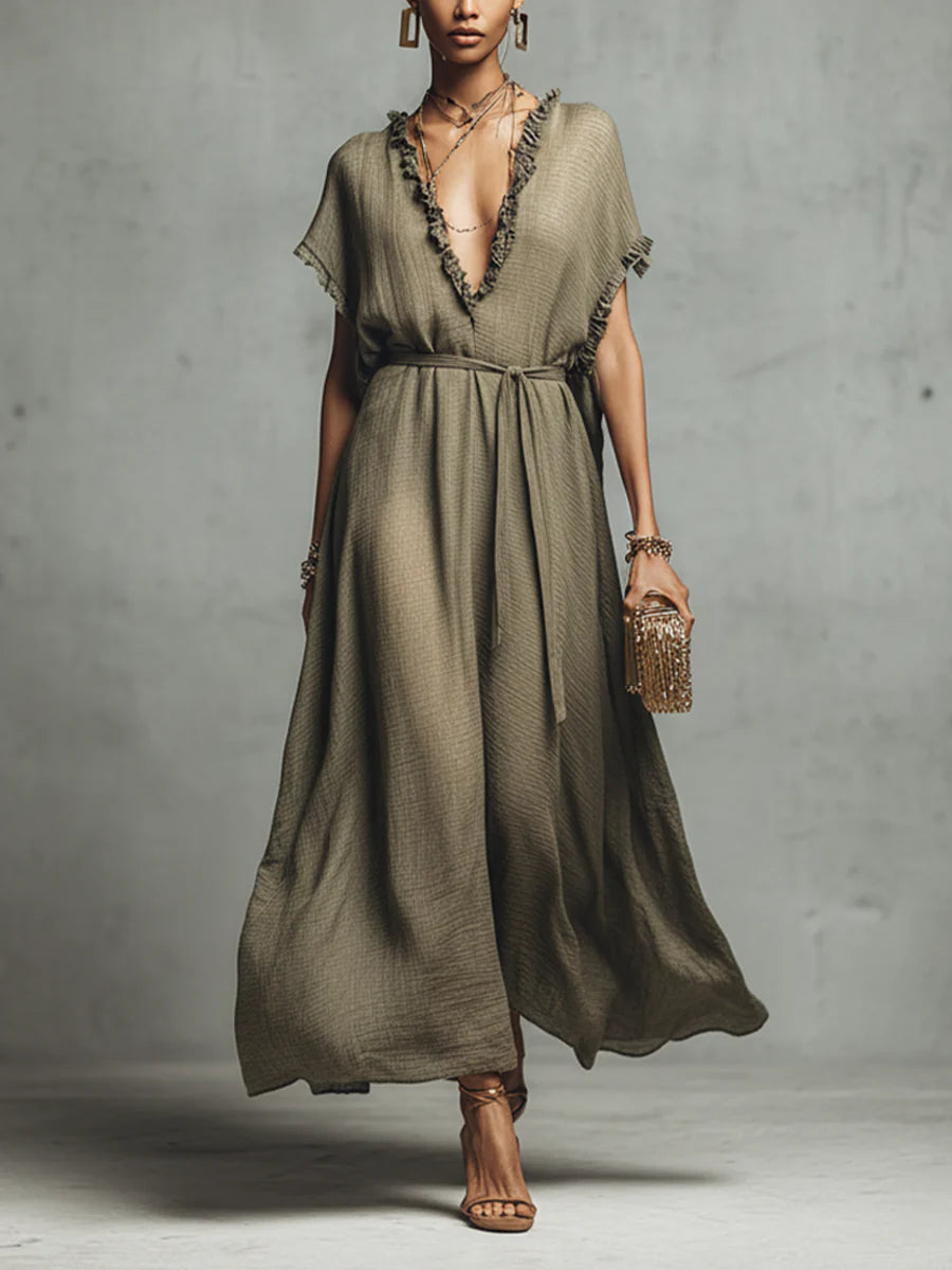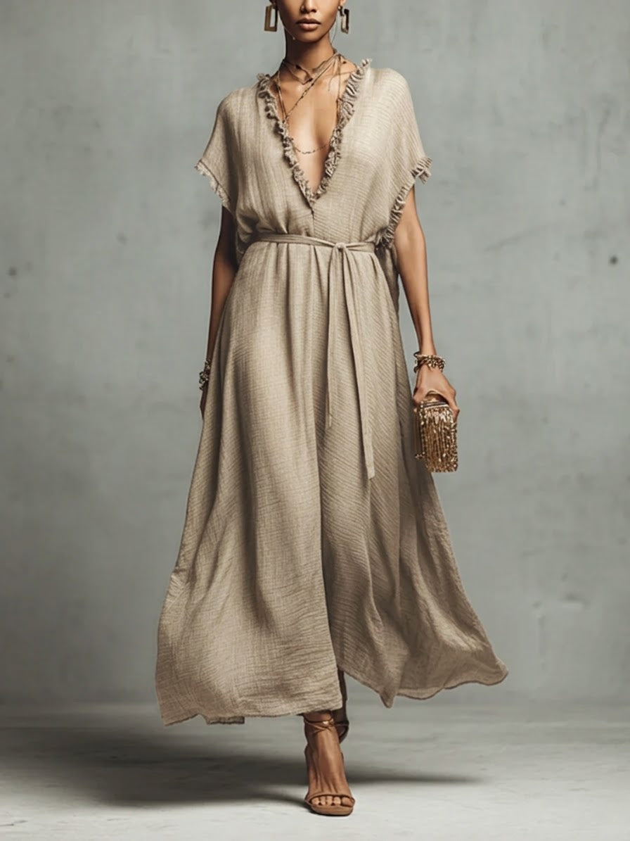 Casual Loose-fitting Linen And Cotton Long Dress